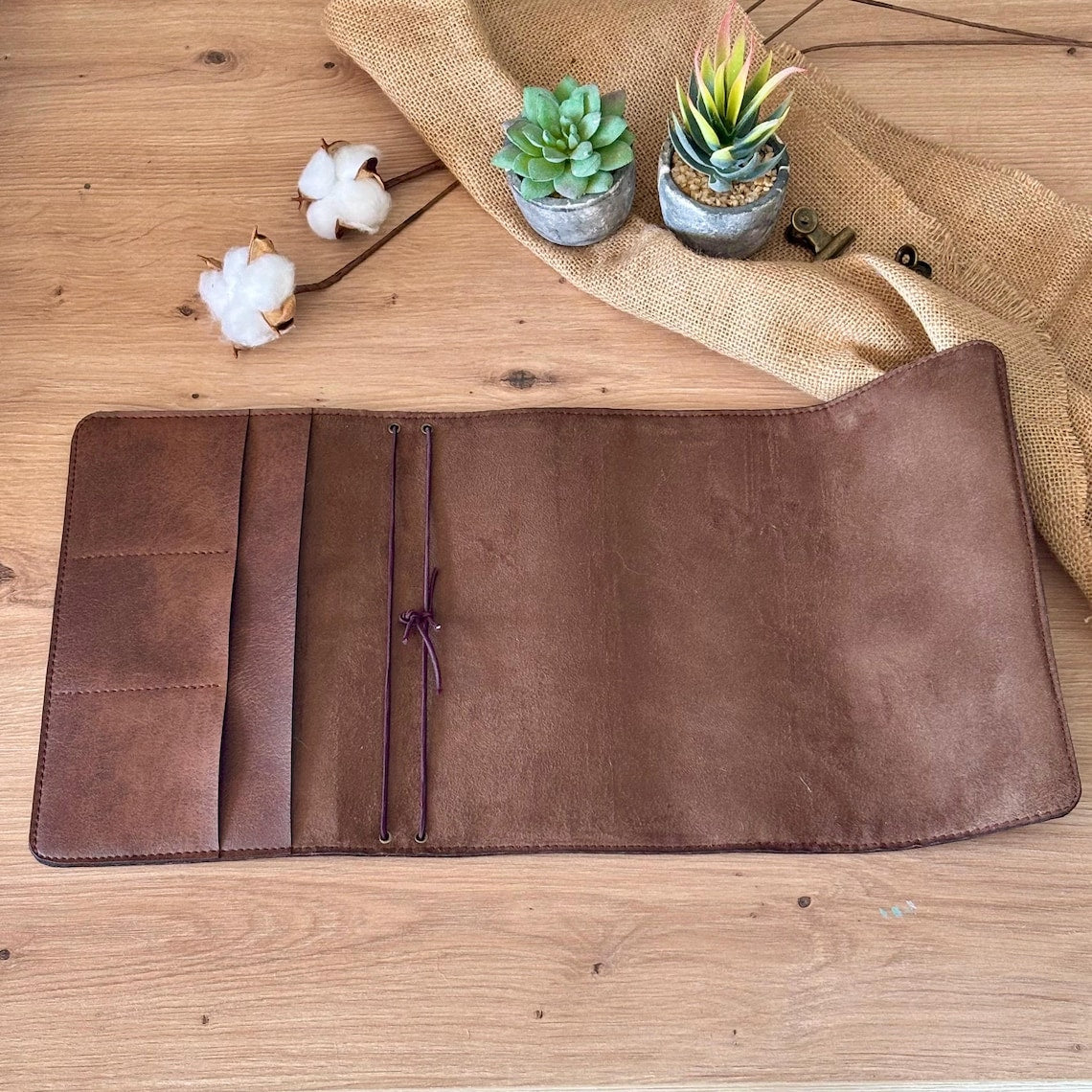 This handmade trifold notebook cover is crafted from scratch with care. It’s designed to fit your favorite inserts in the size you need, making it perfect for staying organized, planning, or enjoying art journaling. The trifold design offers both functionality and charm, keeping your notebooks secure and stylish wherever you go. It also makes a thoughtful gift for travelers, writers, and artists who love to carry their creativity with them.